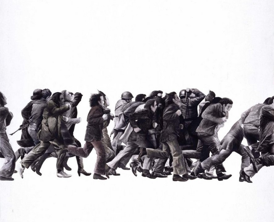 corriendo). Cuadro de Juan Genovés. Esta obra, realizado el año de la muerte de