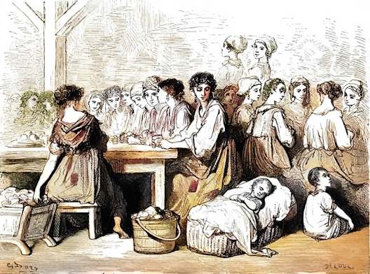 de Gustavo Doré sobre las cigarreras en 1862. Las cunas las ponía la empresa y,