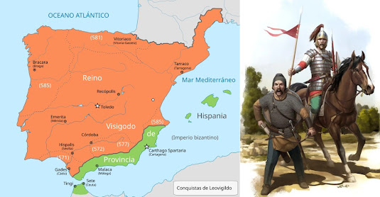 durante Leovigildo, año 586. WIKIPEDIA. Guerreros visigodos. (S. V d.C.) wraithdt.© Archivos de la historia. |